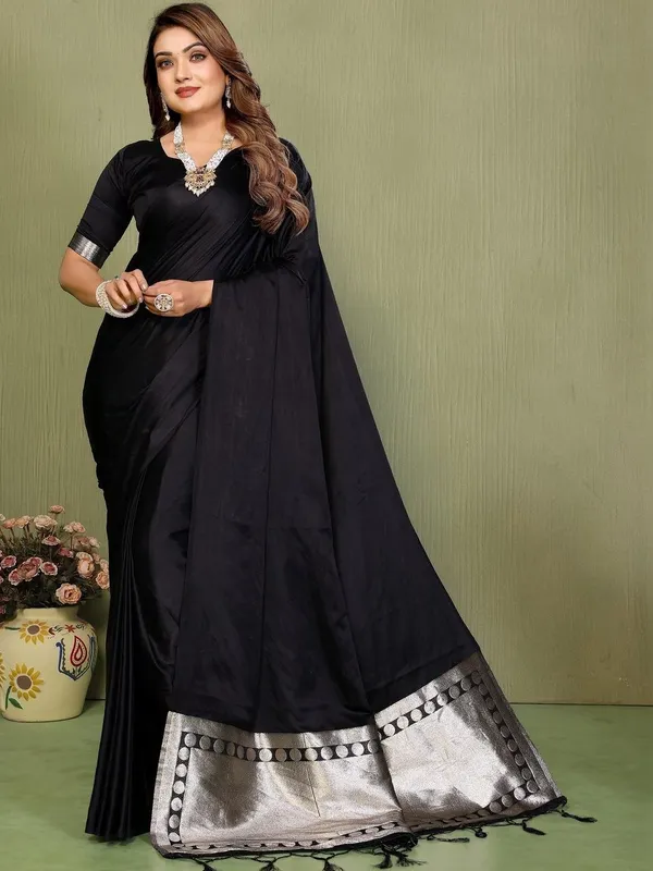 Black Satin Saree For Women