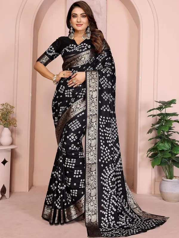 Black Silk Blend Saree For Women