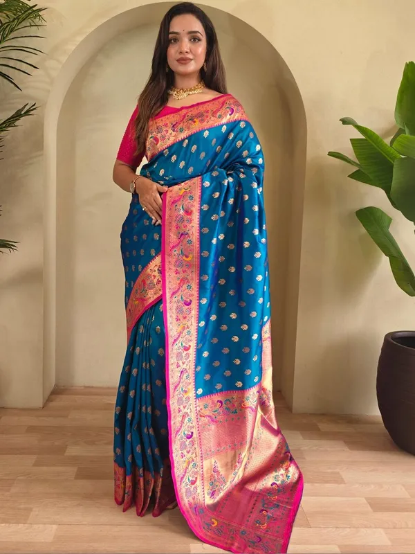 Blue Art Silk Saree For Women
