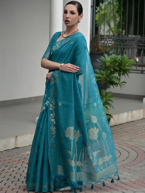 Blue Jute Silk Saree For Women