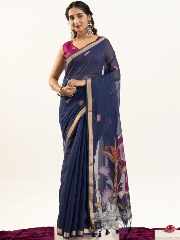 Blue Muga Pure Cotton Saree For Women