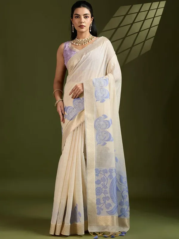 Blue Pure Cotton Saree For Women