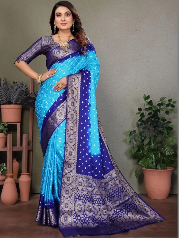 Blue Silk Blend Saree For Women