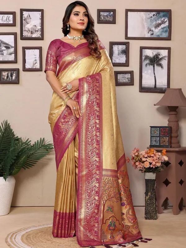 Gold And Toned Tissue Saree For Women