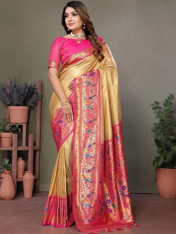 Gold Toned Tissue Saree For Women