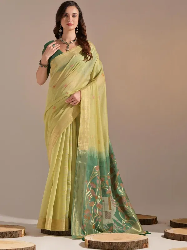 Green Muga Pure Cotton Saree For Women