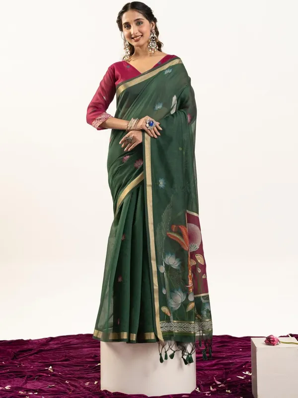 Green Pure Cotton Saree For Women