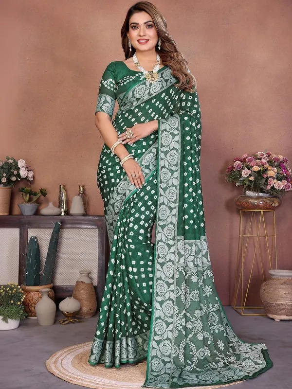 Green Silk Blend Saree For Women