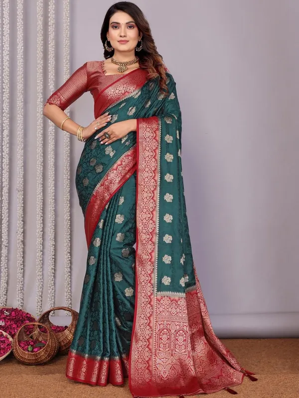 Green Silk Blend Saree For Women