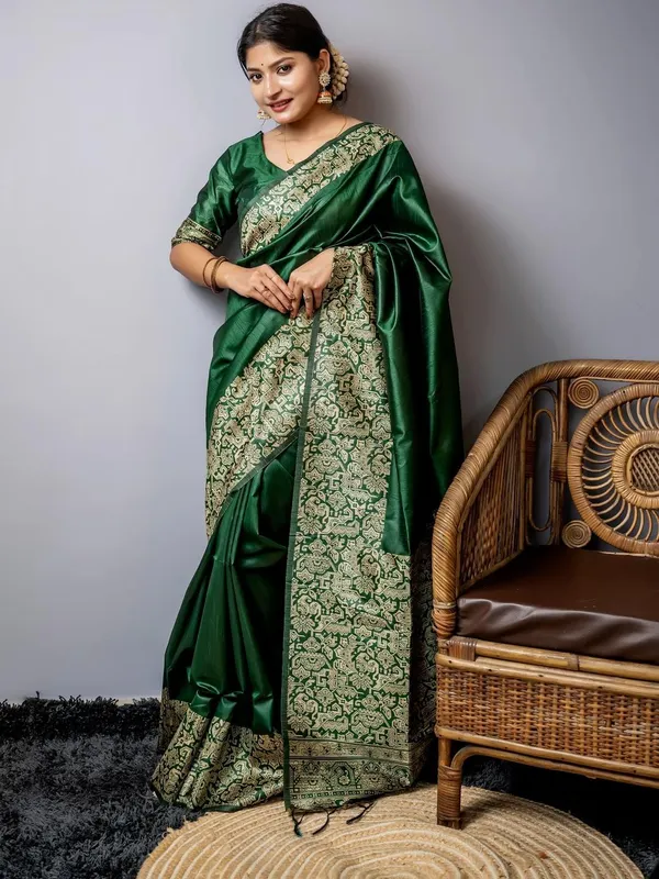 Green Silk Blend Saree For Women