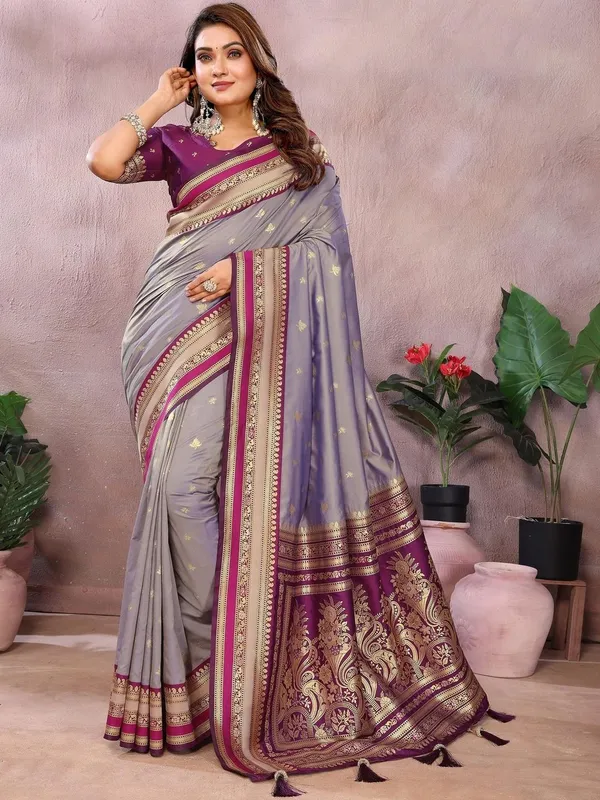Grey And Maroon Art Silk Saree For Women