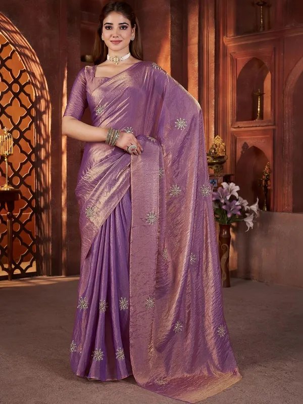 Lavender Pure Chiffon Saree For Women