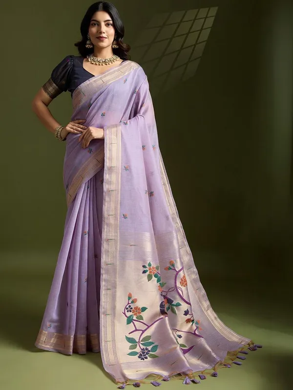 Lavender Pure Cotton Saree For Women