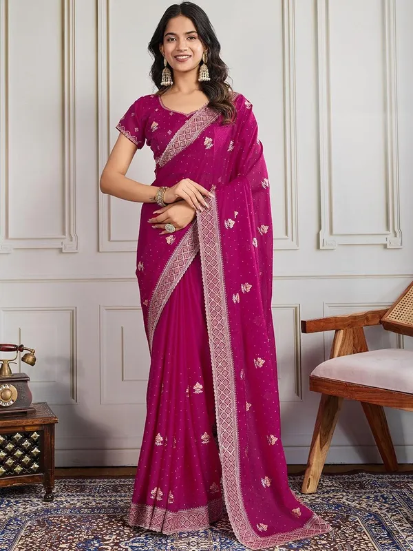 Magenta Poly Georgette Saree For Women