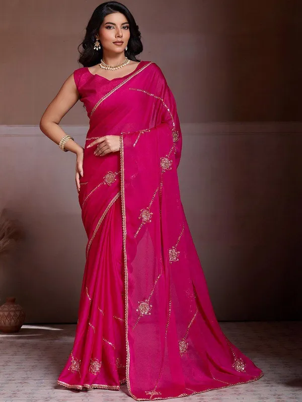 Magenta Silk Blend Saree For Women