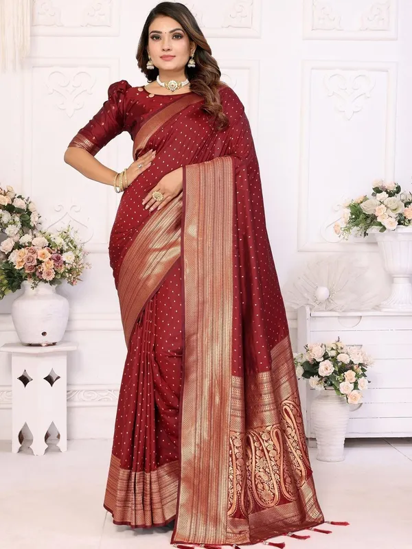 Maroon Art Silk Saree For Women
