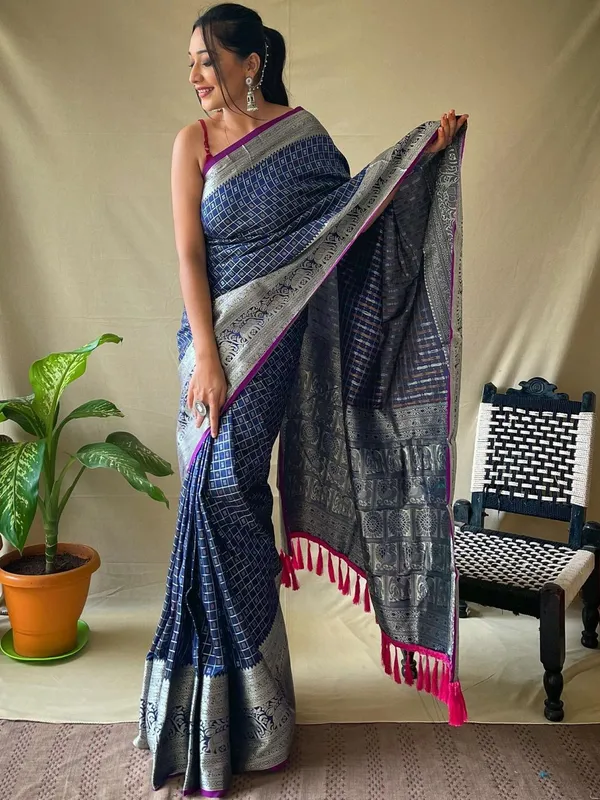 Navy Blue Art Silk Saree For Women