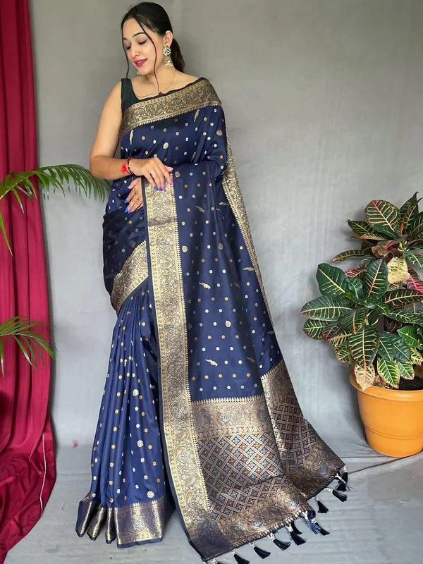 Navy Blue Art Silk Saree For Women