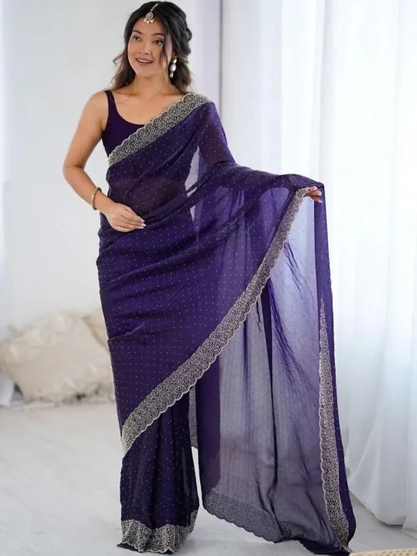 Navy Blue Silk Blend Saree For Women
