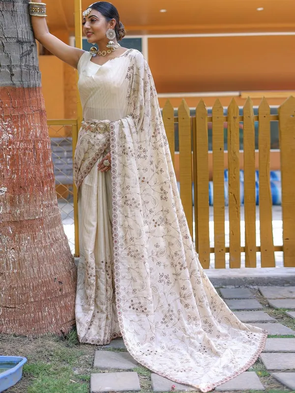 Off White Art Silk Saree For Women