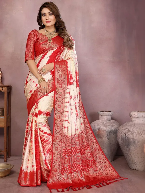 Off White Art Silk Saree For Women