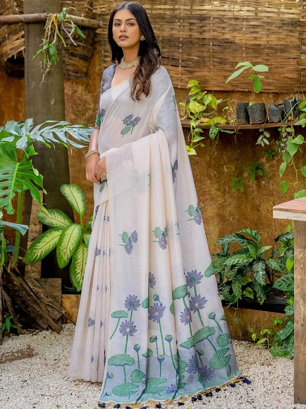Off White Pure Cotton Saree For Women