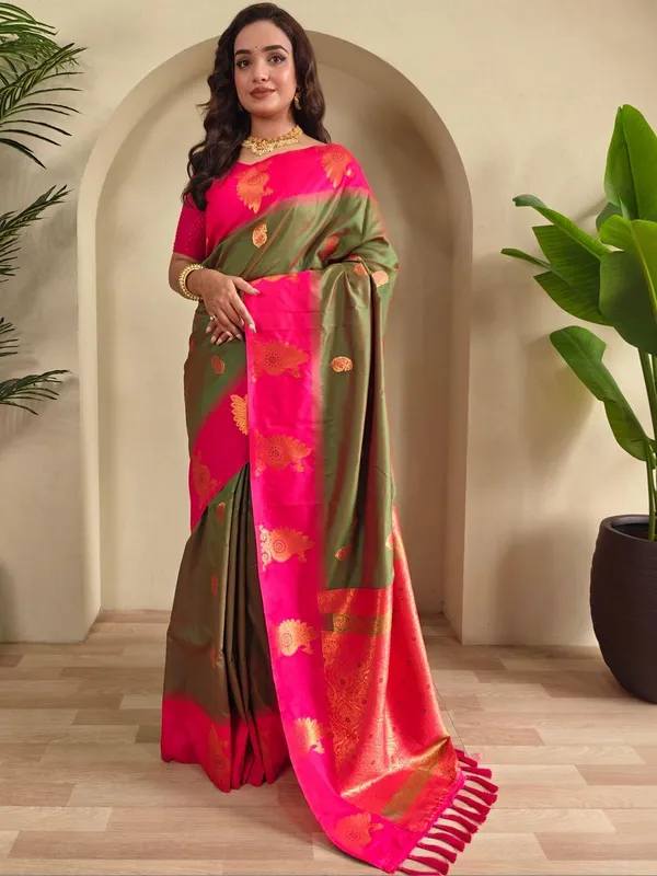 Olive And Pink Art Silk Saree For Women