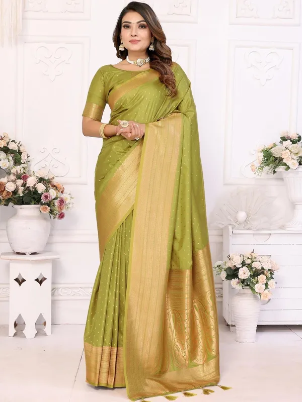 Olive Art Silk Saree For Women