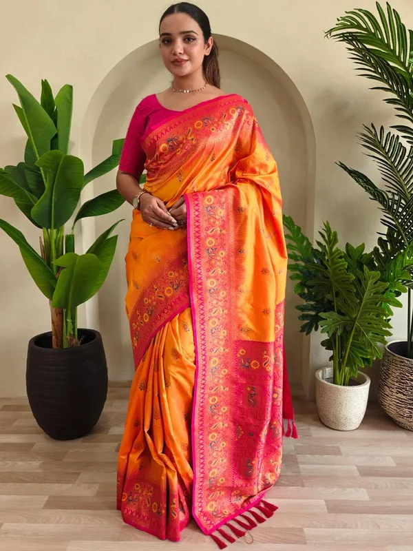 Orange Art Silk Saree For Women