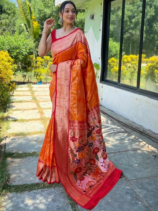Orange Art Silk Saree For Women