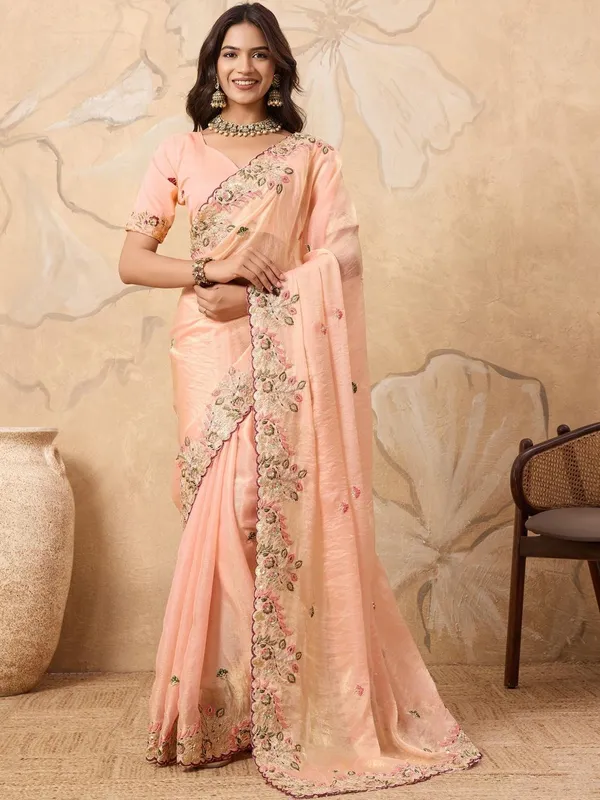 Peach Pure Chiffon Saree For Women