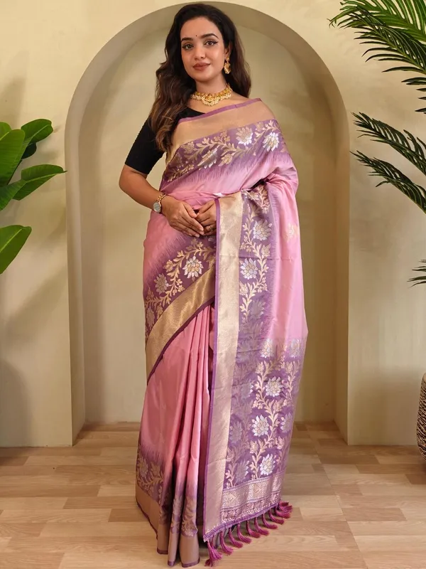 Pink Art Silk Saree For Women