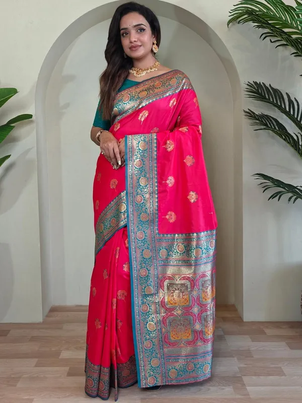 Pink Art Silk Saree For Women