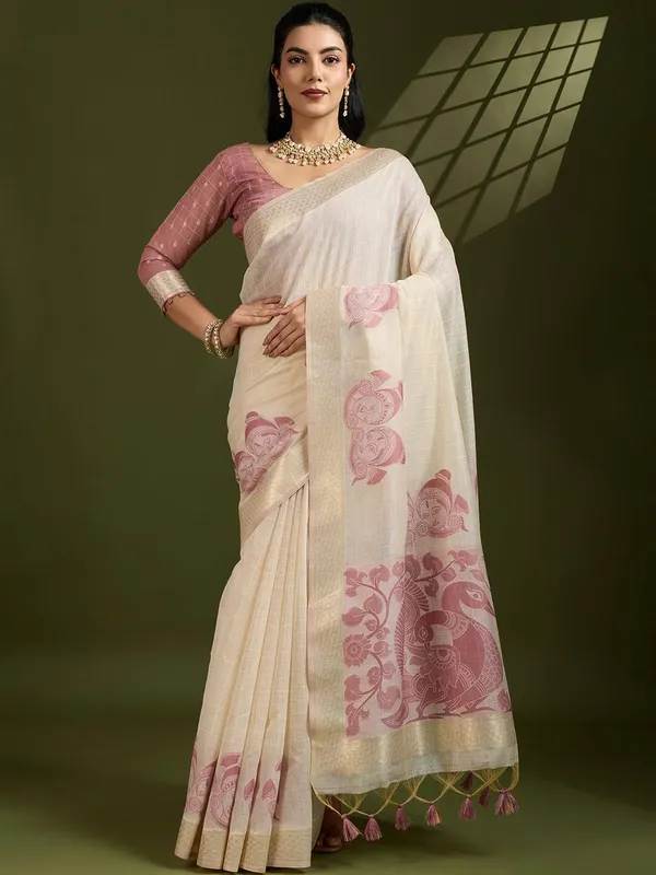 Pink Muga Pure Cotton Saree For Women