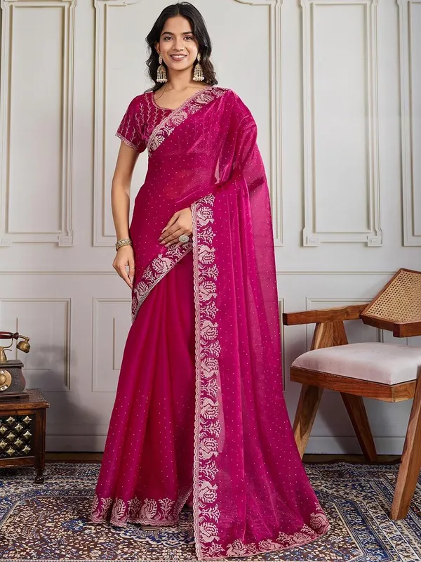 Pink Pure Chiffon Saree For Women