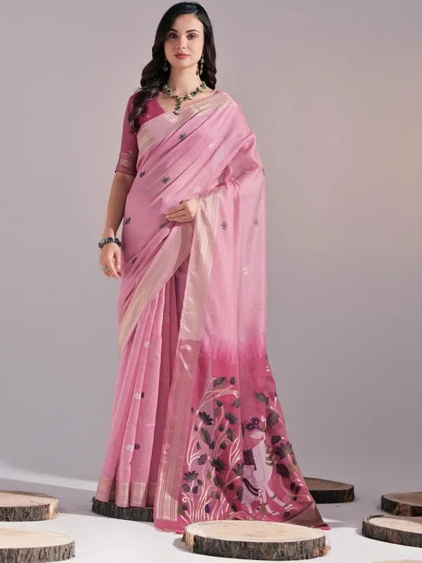 Pink Pure Cotton Saree For Women