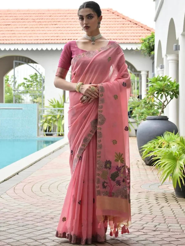 Pink Pure Cotton Saree For Women