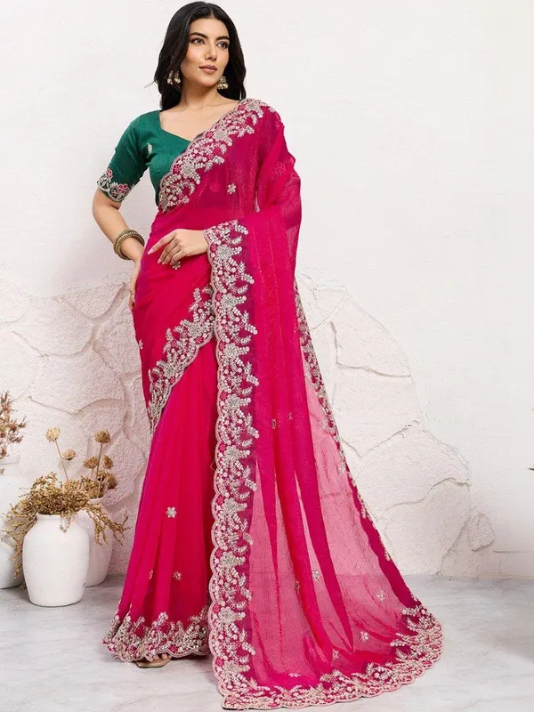 Pink Silk Blend Saree For Women