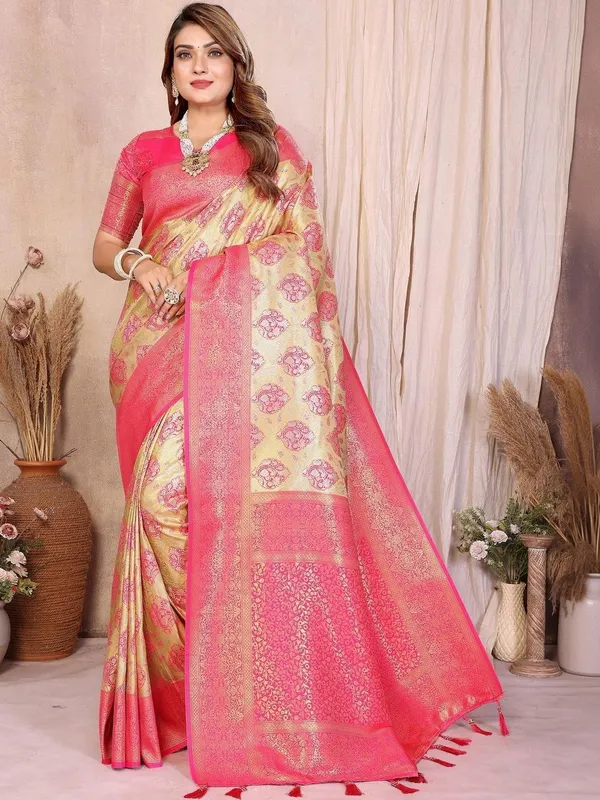 Pink Tissue Saree For Women