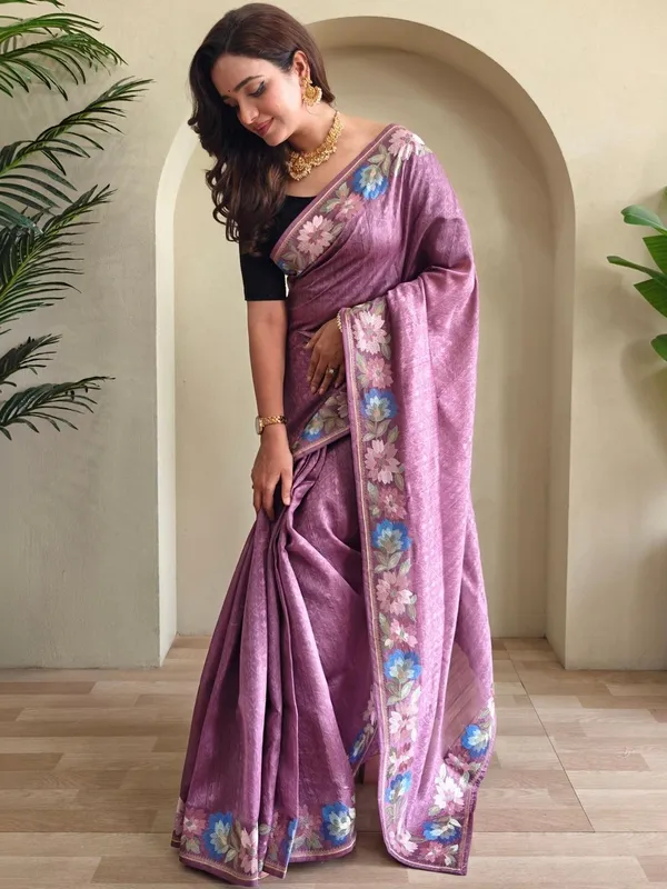 Purple Art Silk Saree For Women