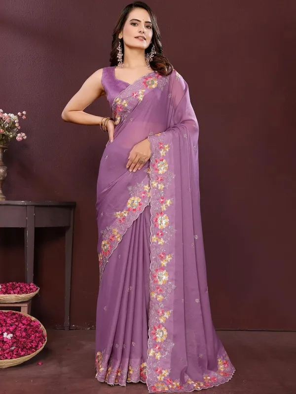 Purple Poly Georgette Saree For Women