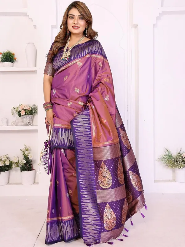 Purple Silk Blend Saree For Women