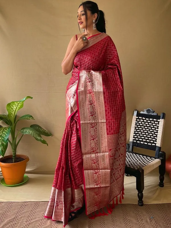 Red Art Silk Saree For Women