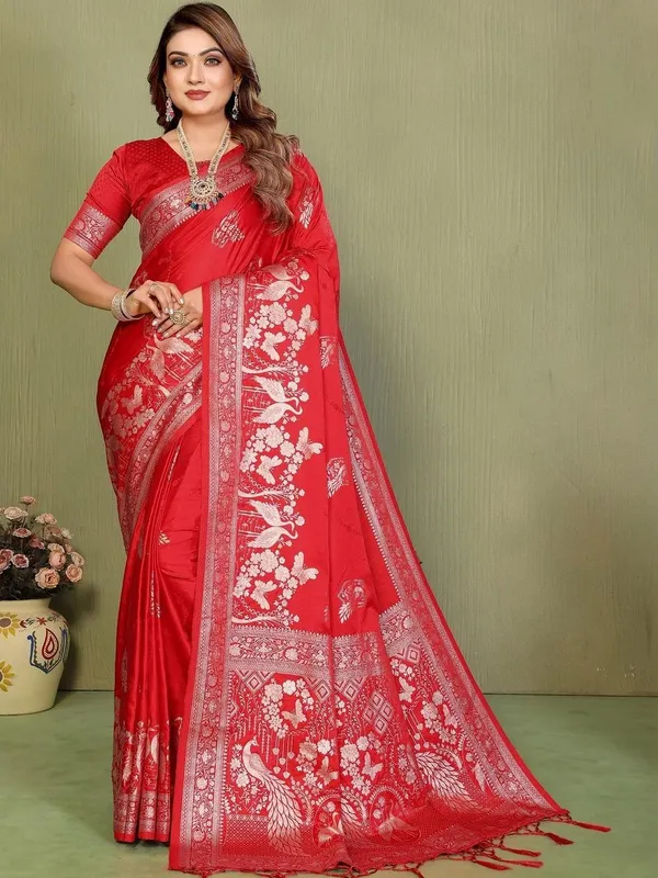 Red Satin Saree For Women