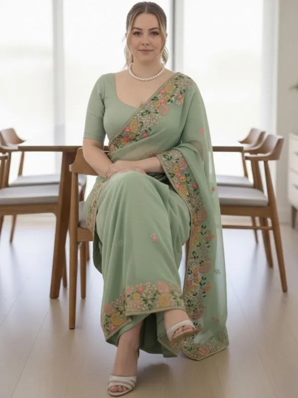 Sea Green Silk Blend Saree For Women