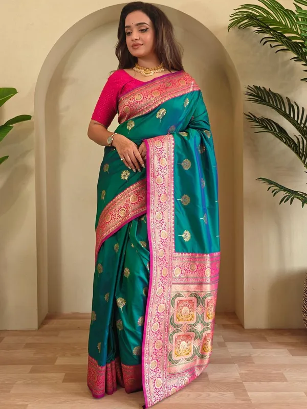 Teal Art Silk Saree For Women