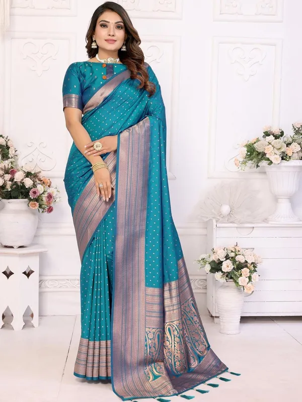 Teal Art Silk Saree For Women