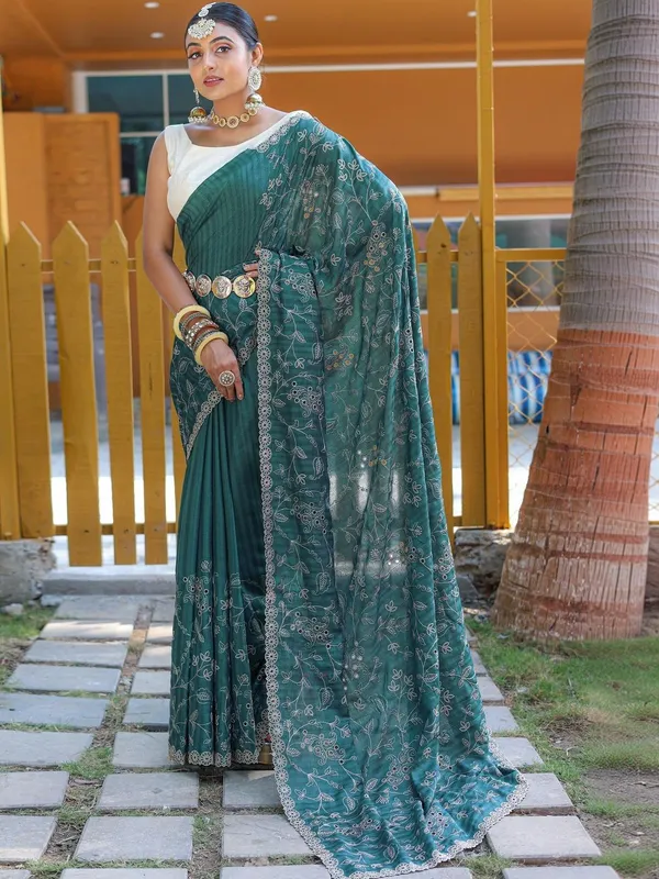 Teal Art Silk Saree For Women