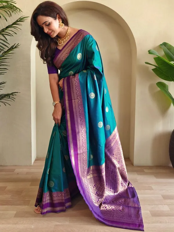 Teal Art Silk Saree For Women