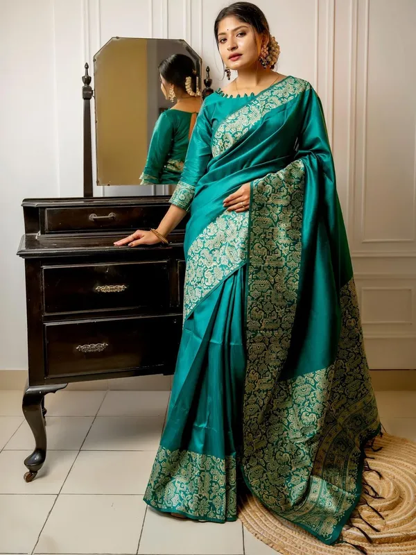 Teal Silk Blend Saree For Women